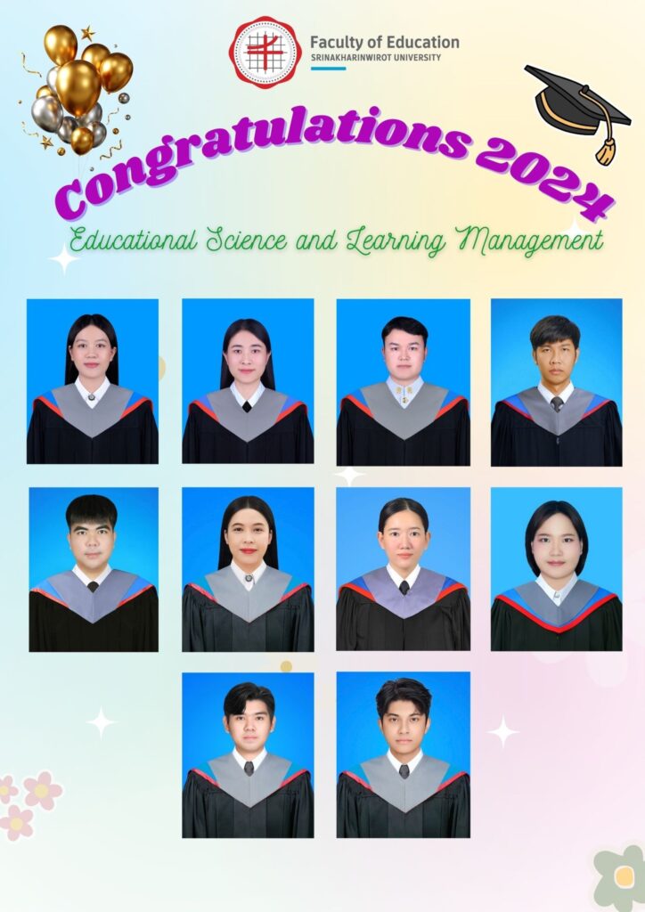 ขอแสดงความยินดีกับมหาบัณฑิตหลักสูตรการศึกษามหาบัณฑิต สาขาวิชาวิทยาการทางการศึกษาและการจัดการเรียนรู้ ที่สำเร็จการศึกษาในปีการศึกษา 2567 ทั้ง 10 ท่าน ![]()